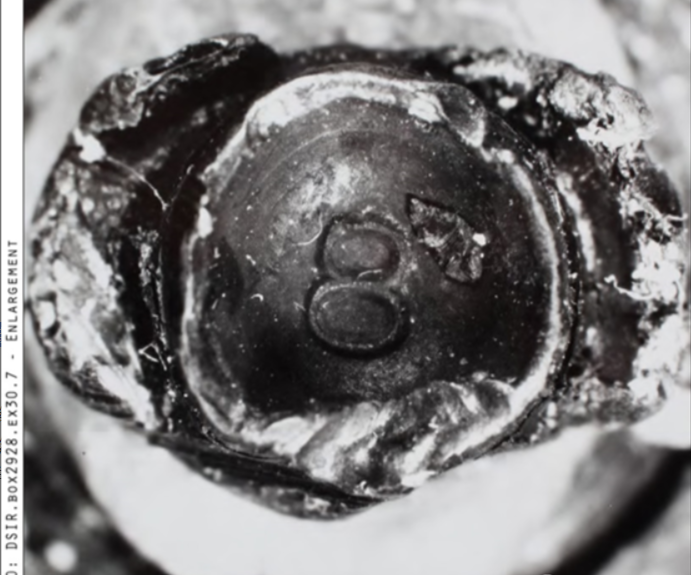 (旧式弹头底部有明显的“8”印记)