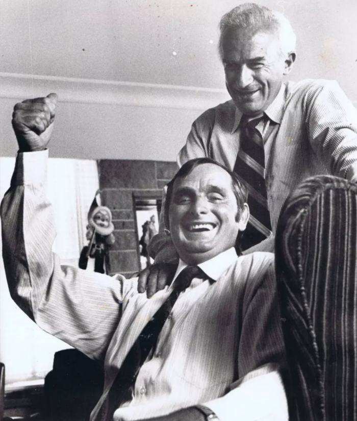 【派特.布斯(左)在与阿瑟.阿兰.托马斯的父亲老托马斯(中)沟通】